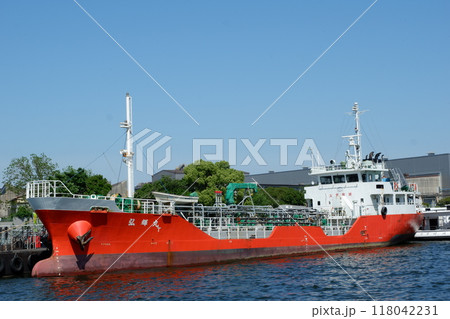 工業地帯に停泊する内航タンカー