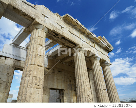 Low angle view of Propylaea or The Grand Entrance to Acropolis