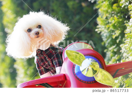 飛行機に乗る犬