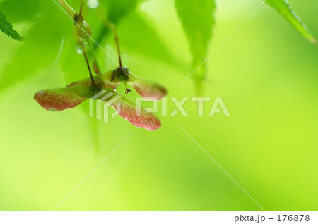 楓の若葉と紅い翼果