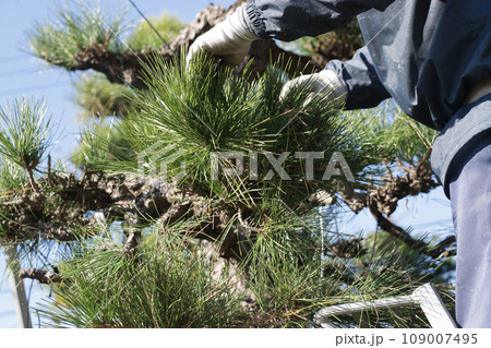 黒松を剪定する庭師