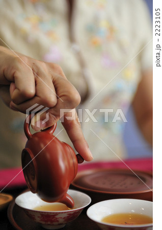 お茶を注ぐ手 茶壺茶杯 中国茶イメージ