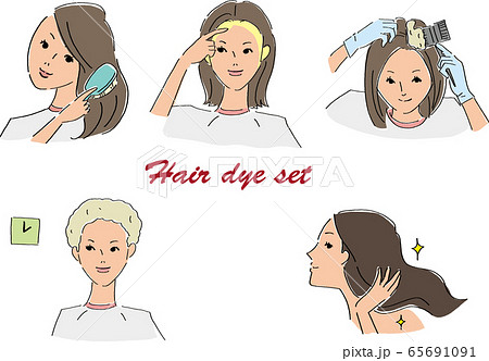 髪を染める女性ベクターセット