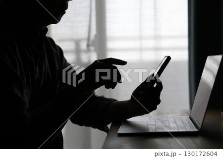 パソコンを操作している悪意のある男性-ガッシュ