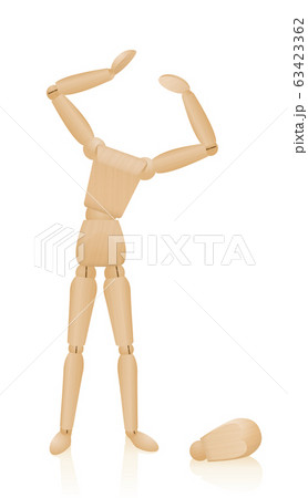 Don't lose your head. Headless wooden figure losing its mind with head dropped down on the floor. Symbol for sorrows, desperation, stress, worries or hopelessness. Vector over white.