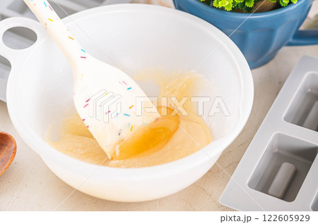 フィナンシェ生地に蜂蜜を加える