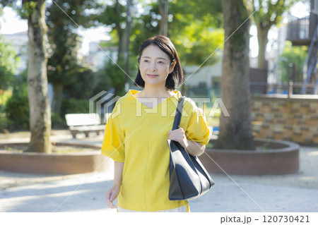 公園で微笑むミドル女性