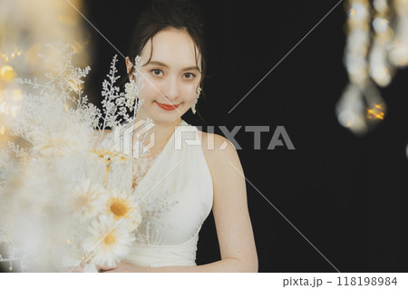 ウェディングドレスを着た若い女性