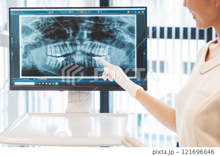 歯のレントゲン写真を撮る若い女性