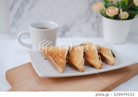 Viennese waffles, with chocolate, breakfast, on a beige background, no people, selective focus,