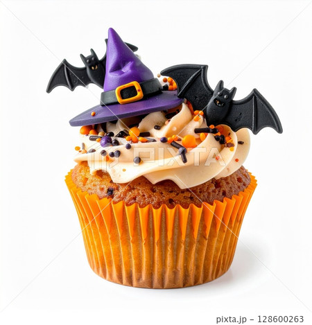 Halloween cupcake chocolate pumpkin spider witch hat festive orange black dessert autumn treats with playful decoration