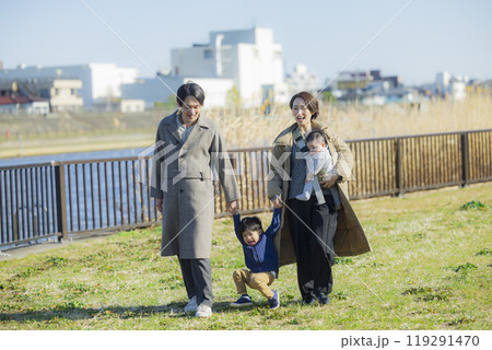 冬にお散歩するファミリー