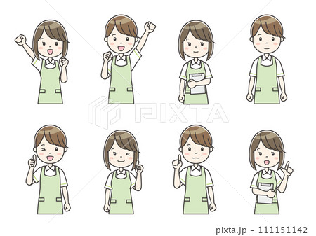 スタイをつけた赤ちゃんの表情のバリエーションイラスト
