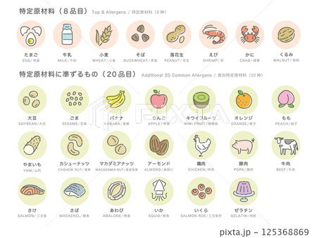 食品アレルゲン表示アイコンセット_28品目_カラー(日本語+英語)