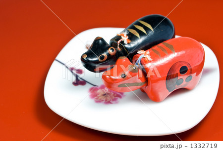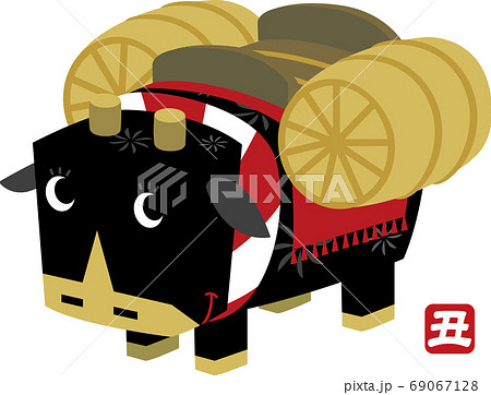 年賀状 丑/牛 赤べこのイラストベクター素材