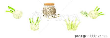 Florence Fennel or Finocchio Plant Species Vector Set