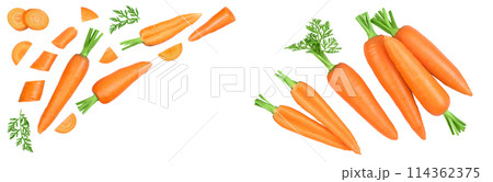 Carrot isolated on white background. Top view with copy space for your text. Flat lay