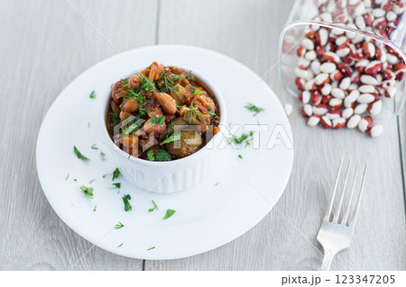 lean vegetable stew with beans, brussels sprouts, tomatoes and other vegetables