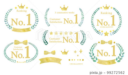 ランキングやレビュー等の評価ラベルの水彩画イラストセット