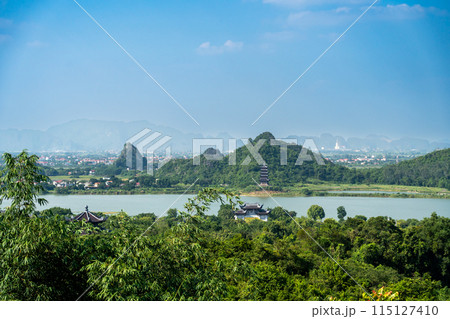 ベトナムハノイ ニンビンにある東洋一の敷地面積を誇る世界遺産のバイディン寺の高台からの眺め