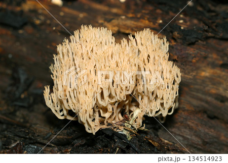 海に生息するサンゴのようにフサフサと美しいフサヒメホウキタケ属キノコ(自然下菌キノコ類マクロ撮影)