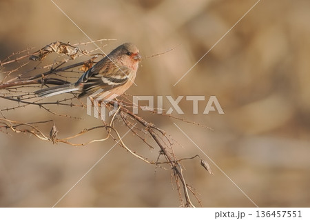 越冬地にやって来たベニマシコの雄