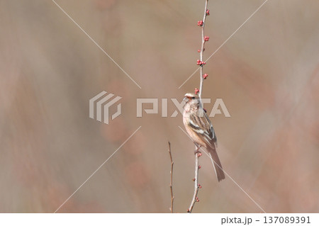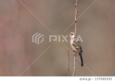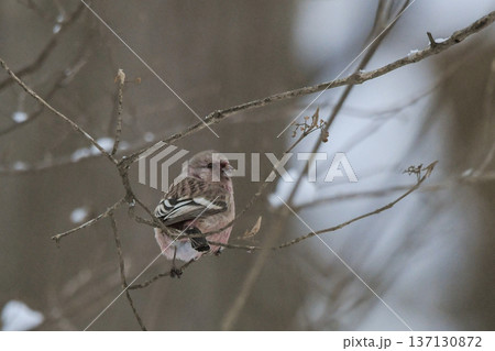 木の枝にとまるベニマシコ