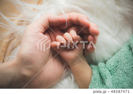 ベビーミトンをしたかわいい赤ちゃん 生後15日の新生児