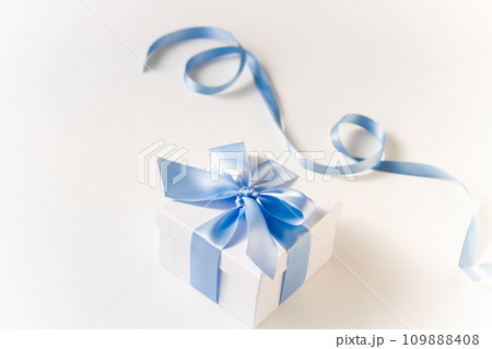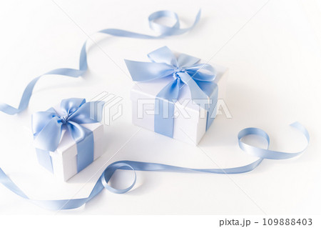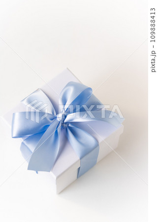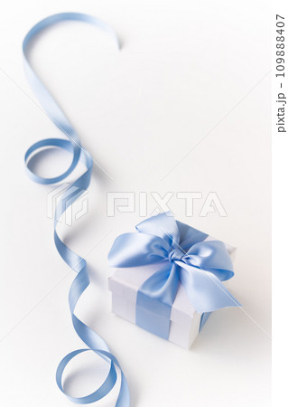 ピュアで爽やかで上品な色サックスブルーのリボンの贈り物