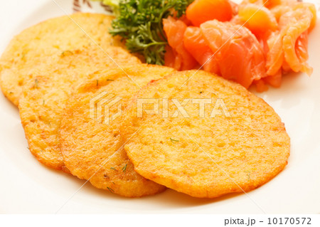 Cooking process of traditional Ukrainian deruny from grated potatoes