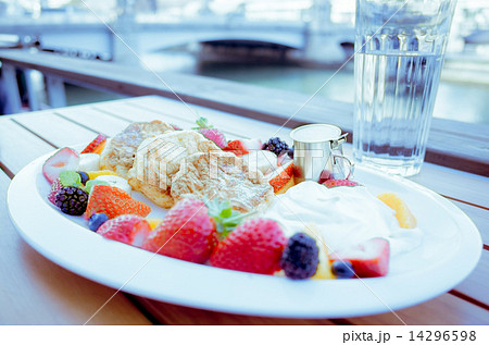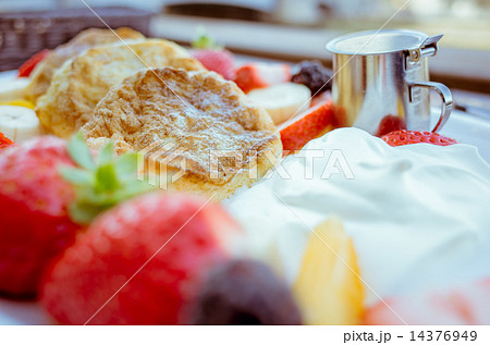 生クリームとフルーツたっぷりパンケーキ