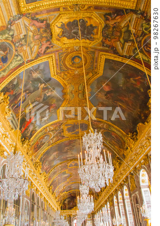 フランスパリのベルサイユ宮殿の神秘的な絵画が描かれた天井