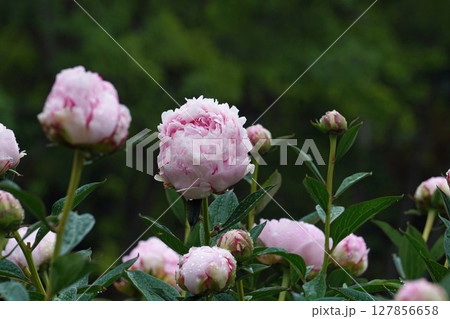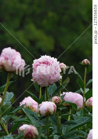 水滴の付いたピンク色の芍薬