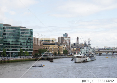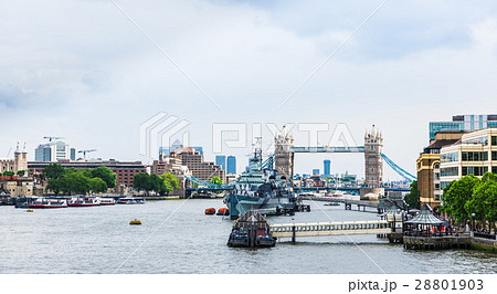 ロンドン:テムズ川とベルファスト号とタワーブリッジ