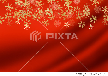 クリスマスのイベントイメージ。赤い高級感あるカーテンと金色の雪の結晶。