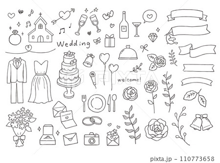 ウエディング・結婚式にまつわる手描きイラストセット(モノクロ)