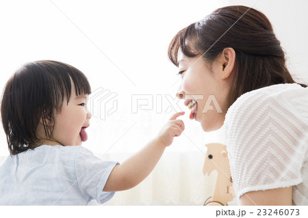 親子のふれあい あやすと舌を出す赤ちゃん コミュニケーション