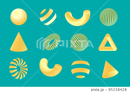Yelow geometry 3D shapes set. Vector design elements for social media and visual content, web and UI design, posters and art collage, branding.