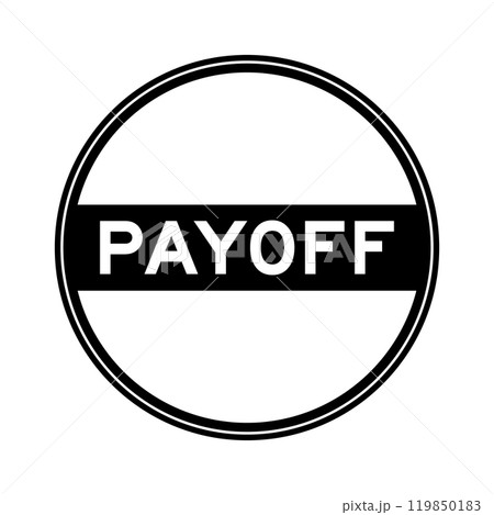 Black color round seal sticker in word payoff on white background