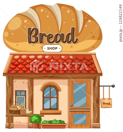 Small Bakery Shop with Bread Sign and Red Roof