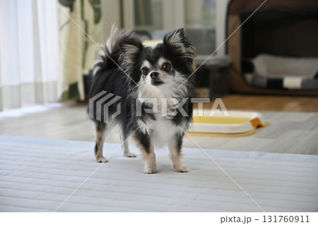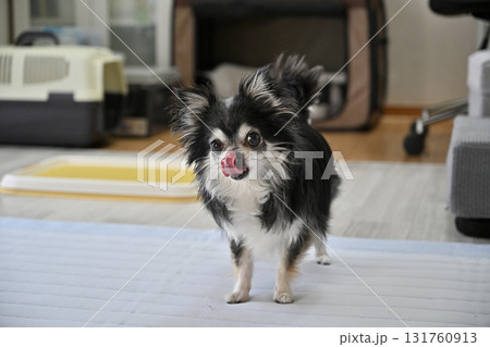 犬用ケージの中で楽しそうにする犬 ロングコートチワワ