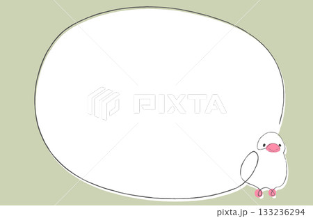 鉛筆で一筆書きしたような文鳥の丸いフレーム