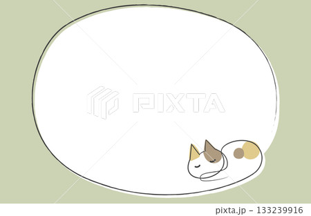 鉛筆で一筆書きしたような丸い三毛猫フレーム