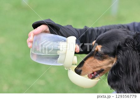 水を飲むシェルティ (シェットランドシープドッグ) アウトドア