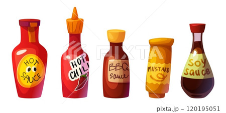 Sauce in plastic and glass bottle.