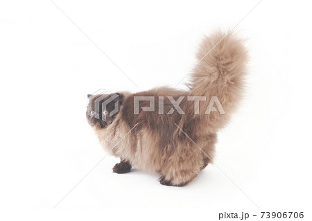 尻尾をあげるふわふわのペルシャ猫