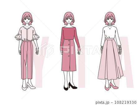 ファッションの三大シルエット【女性】ピンクver.