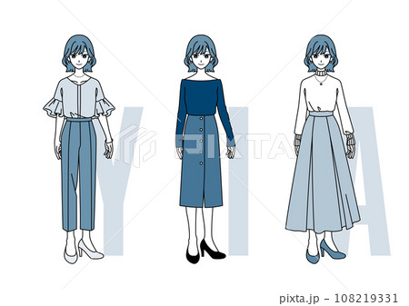 ファッションの三大シルエット【女性】青ver.