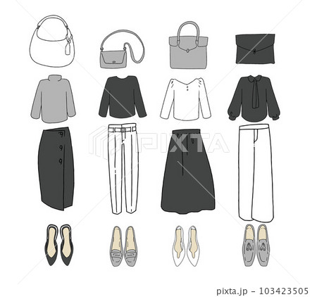 オフィスカジュアルファッションのイラストセット