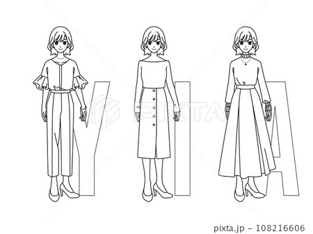 ファッションの三大シルエット【女性】線画ver.